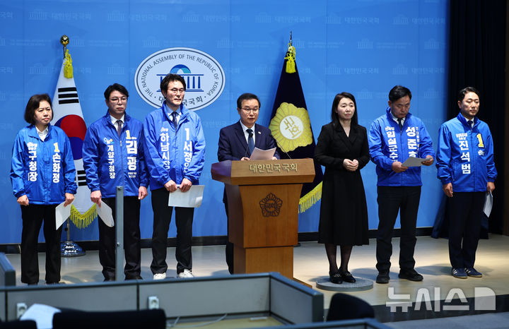 [서울=뉴시스] 김명년 기자 = 이건태 더불어민주당 의원이 26일 오전 서울 여의도 국회 소통관에서 열린 '이재명 정부 청와대 행정관 출신 지방선거 후보자 기자회견'에서 발언하고 있다. 2025.03.26. [email protected].