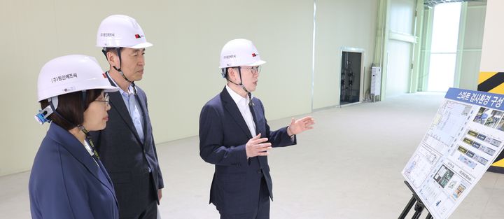 [김포=뉴시스] 김양수 기자 = 이명구(오른쪽 첫째) 관세청장이 27일 서울세관 이사화물지정장치장 증축공사 현장을 찾아 공사진행 상황을 점검하고 안전사고 예방을 당부하고 있다.(사진=관세청 제공).2026.03.27. [email protected]