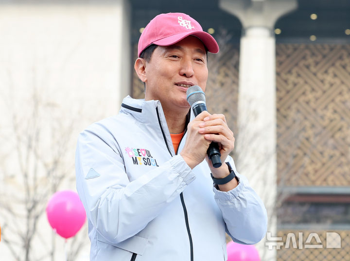 [서울=뉴시스] 이영환 기자 = 오세훈 서울시장이 28일 오전 서울 종로구 광화문광장에서 열린 2026 서울 유아차 런(Run) 행사에 참석해 인사말을 하고 있다. 2026.03.28. [email protected]