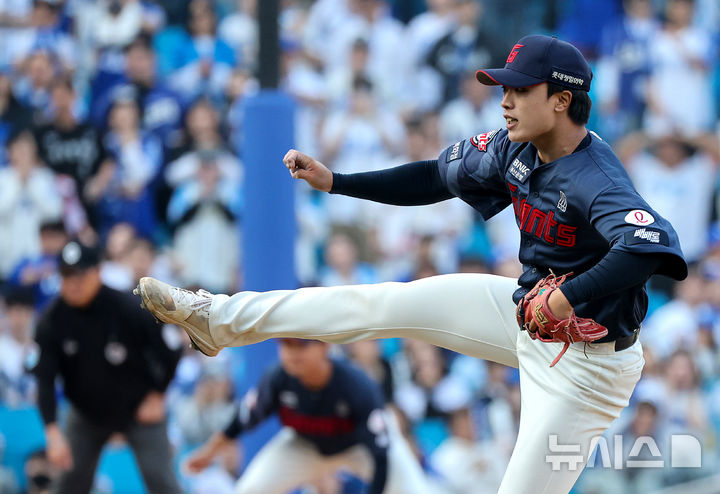 [대구=뉴시스] 이무열 기자 = 28일 대구 수성구 삼성라이온즈파크에서 열린 2026 신한 SOL KBO리그 개막전 롯데 자이언츠와 삼성 라이온즈 경기, 9회말 교체 투입된 롯데 박정민이 공을 던지고 있다. 2026.03.28. [email protected]