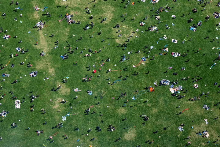 [워싱턴=AP/뉴시스] 28일(현지 시간) 미국 워싱턴 내셔널 몰에서 '벚꽃 연 축제'가 열려 참가자들이 연을 날리고 있다. 2026.03.29.