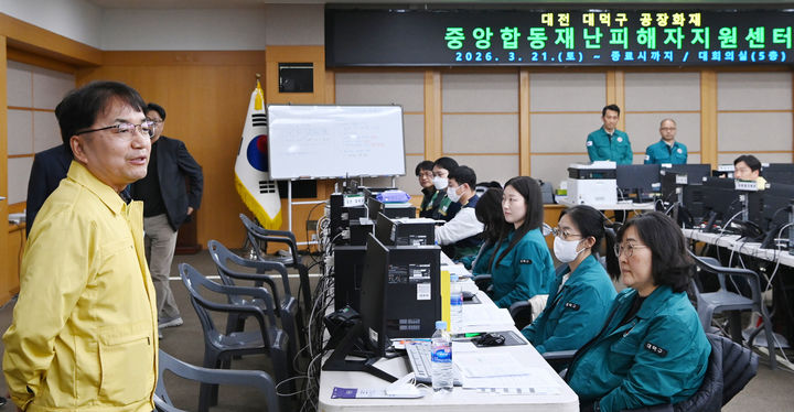 [서울=뉴시스] 조성우 기자 = 김광용 행정안전부 재난안전관리본부장이 29일 대전 공장 화재 관련 중앙합동재난피해자지원센터를 방문해 민원 처리 현황을 점검하고 있다. (사진=행정안전부 제공) 2026.03.29. [email protected] *재판매 및 DB 금지