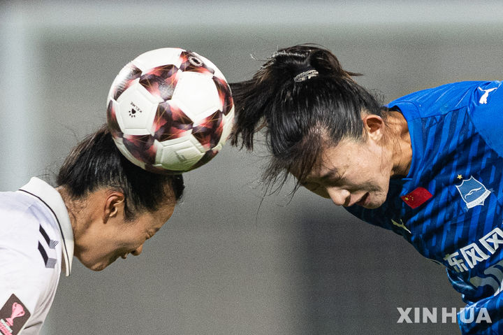 [우한=신화/뉴시스] 수원FC 위민의 최유리(왼쪽)가 29일(현지 시간) 중국 우한 한커우 문화스포츠센터에서 열린 2025-26 아시아축구연맹(AFC) 여자 챔피언스리그(AWCL) 8강전 우한 장다와 경기 중 공을 다투고 있다. 수원이 4-0으로 완승하고 4강에 올라 북한 내고향체육단과 결승 진출을 다툰다. 2026.03.30.