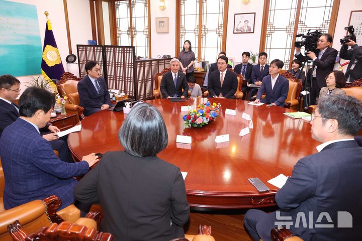[서울=뉴시스] 조성봉 기자 = 우원식 국회의장이 30일 오후 서울 여의도 국회의장 집무실에서 열린 초당적 개헌추진을 위한 제정당 2차 연석회의에서 발언을 하고 있다. 이날 연석회의에는 용혜인 기본소득당 대표, 윤종오 진보당 원내대표, 한병도 더불어민주당 원내대표, 우 국회의장, 서왕진 조국혁신당 원내대표, 천하람 개혁신당 원내대표, 한창민 사회민주당 대표가 참석했다. 2026.03.30. [email protected]