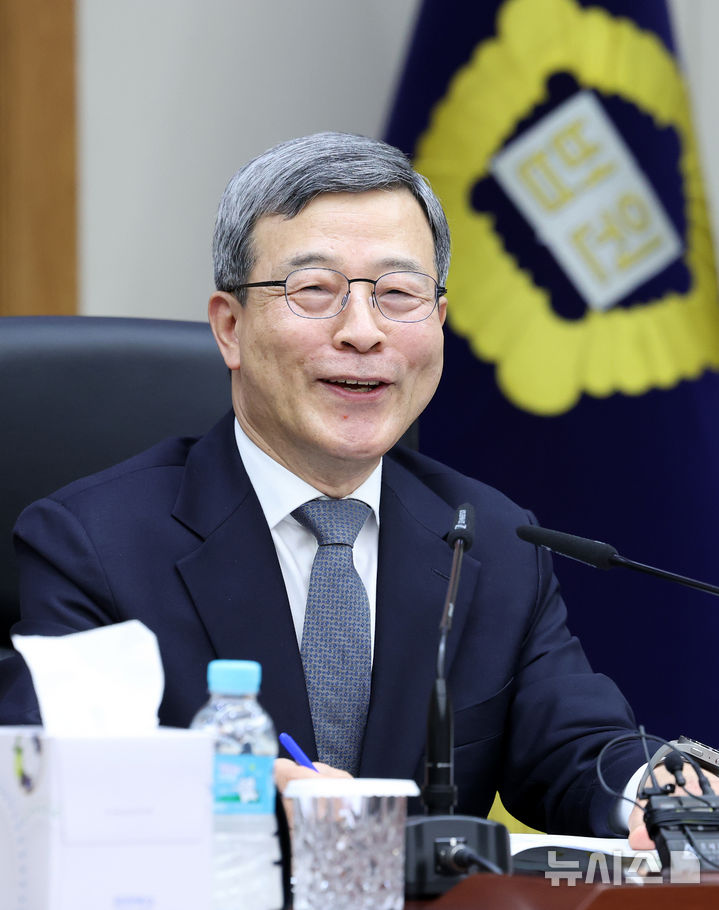 [서울=뉴시스] 조성우 기자 = 이동원 양형위원회 위원장이 30일 오후 서울 서초구 대법원에서 열린 양형위원회 제144차 회의에서 발언하고 있다. 2026.03.30. [email protected]