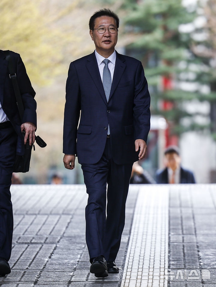 [서울=뉴시스] 정병혁 기자 = 박성재 전 법무부 장관이 31일 서울 서초구 서울중앙지방법원에서 열린 이종섭 호주대사 도피 의혹 관련 첫 공판에 출석하고 있다. 2026.03.31. [email protected]