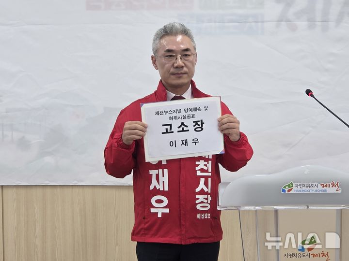 [제천=뉴시스] 이병찬 기자 = 국민의힘 이재우 충북 제천시장 예비후보가 2일 한 지역매체를 허위사실 공표 혐의로 고소했다. 이 매체는 이 예비후보가 기획재정부 재직 시절 청주지법 제천지원의 제천비행장 이전을 지원했는데, 이전 예정지 인근에 이 예비후보 측근 소유의 토지가 있다고 보도했다[email protected]