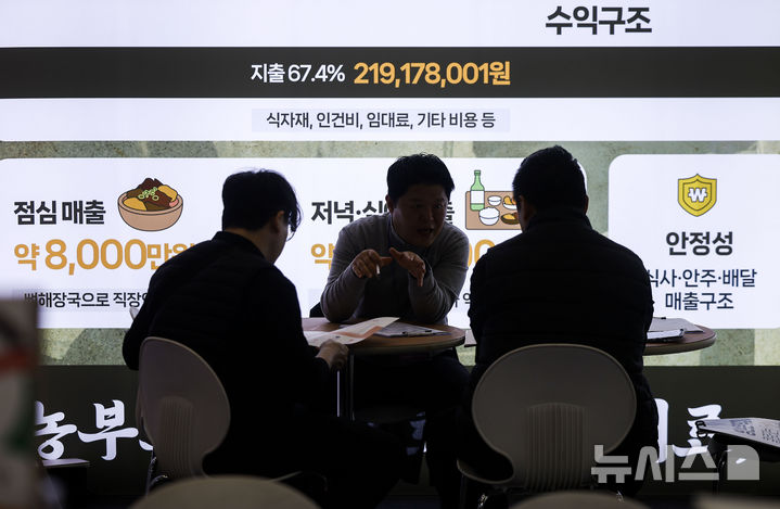 [서울=뉴시스] 정병혁 기자 = 2일 서울 강남구 코엑스에서 열린 2026 상반기 IFS 프랜차이즈 창업·산업 박람회에서 참관객들이 창업상담을 받고 있다. 2026.04.02. [email protected]
