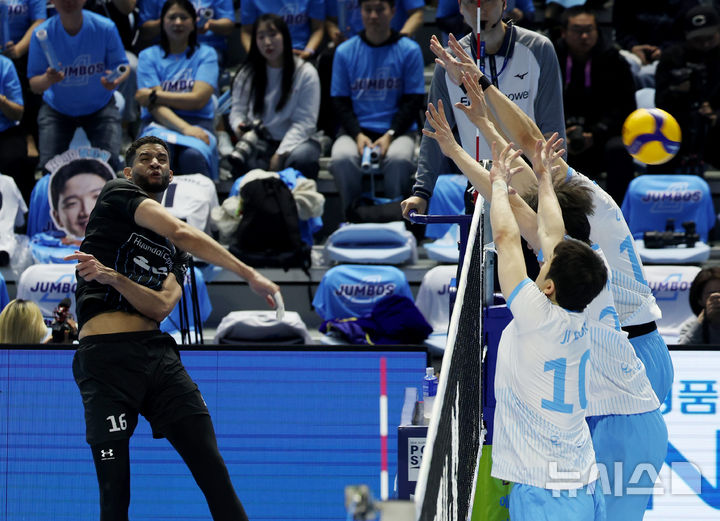 [인천=뉴시스] 김진아 기자 = 2일 오후 인천 계양체육관에서 열린 2025-2026 V리그 챔피언결정전 대한항공과 현대캐피탈의 경기, 현대캐피탈 레오가 공격하고 있다. 2026.04.02. [email protected]