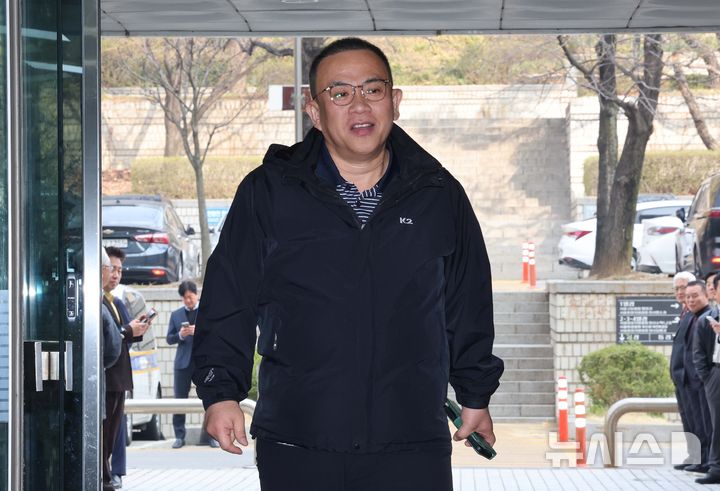 [서울=뉴시스] 조성우 기자 = 명태균 씨가 3일 오전 서울 서초구 서울중앙지방법원에서 열린 오세훈 서울시장의 여론조사비 대납 의혹 관련 재판에 증인으로 출석하고 있다. 2026.04.03. [email protected]