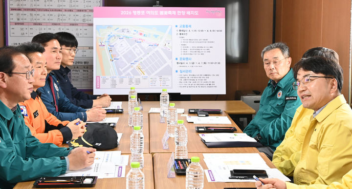 [서울=뉴시스] 김광용(오른쪽) 행정안전부 재난안전관리본부장이 3일 서울 여의도 봄꽃축제장을 방문해 안전대책 점검회의를 주재하고 있다. (사진=행정안전부 제공) 2026.04.03. [email protected] *재판매 및 DB 금지
