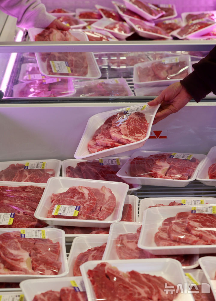 [서울=뉴시스] 이영환 기자 = 5일 오전 서울 서초구 농협유통 하나로마트 양재점에 육류가 진열되어 있다.