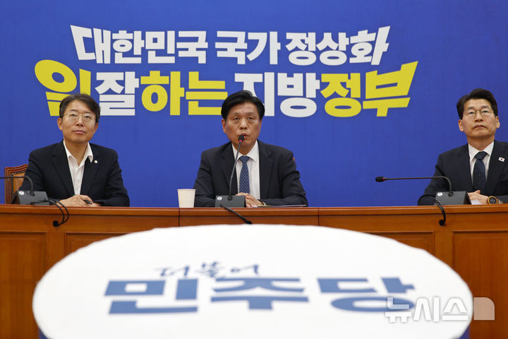 [서울=뉴시스] 김명년 기자 = 조승래 더불어민주당 사무총장이 5일 오후 서울 여의도 국회에서 6.3 지방선거 슬로건 및 홍보캠페인을 발표하고 있다. 2025.04.05. [email protected]