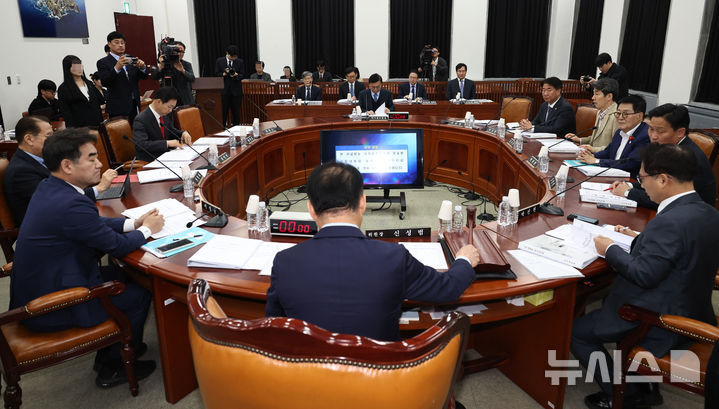 [서울=뉴시스] 국회사진기자단 = 신성범 국회 정보위원회 위원장이 6일 서울 여의도 국회에서 열린 정보위원회 전체회의에서 개회선언을 하고 있다. 2026.04.06. [email protected]