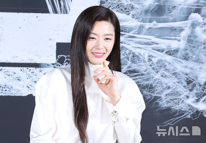[서울=뉴시스] 조수정 기자 = 배우 전지현이 6일 오전 서울 용산 CGV에서 열린 영화 '군체' 제작보고회에서 질문을 들으며 미소짓고있다. 영화 군체는 5월 개봉한다. 2026.04.06. [email protected]