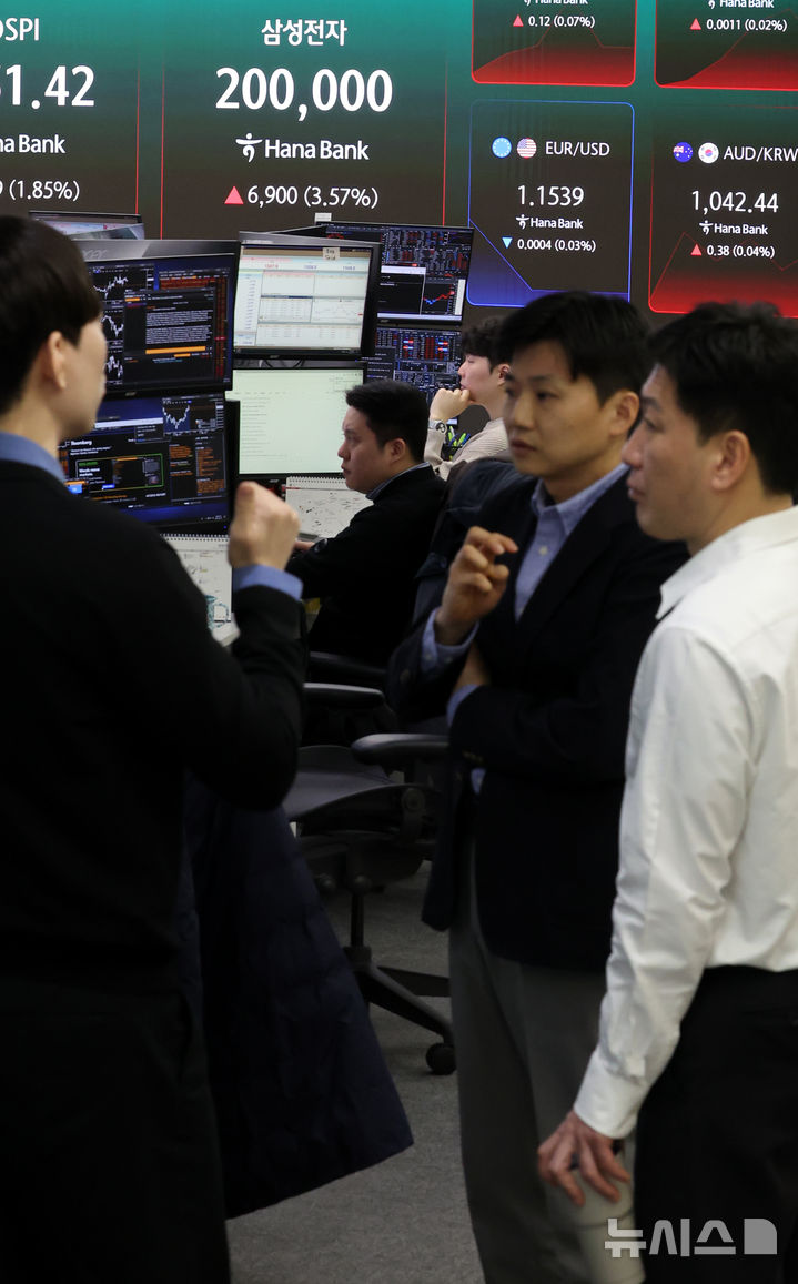 [서울=뉴시스] 박주성 기자 = 삼성전자가 올해 1분기 영업이익 57조2000억원을 기록한 7일 오전 서울 중구 하나은행 딜링룸 전광판에 삼성전자 지수가 표시되고 있다. 2026.04.07. [email protected]
