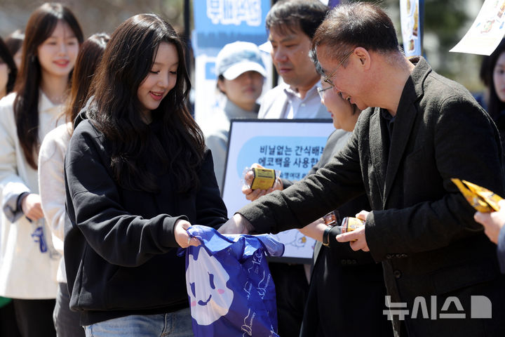 숙명여대는 기존 간식 배부 행사에서 사용하던 일회용 비닐봉투 대신, 사전에 학생들에게 에코백과 장바구니 지참을 안내했다. 2026.04.07. [email protected]