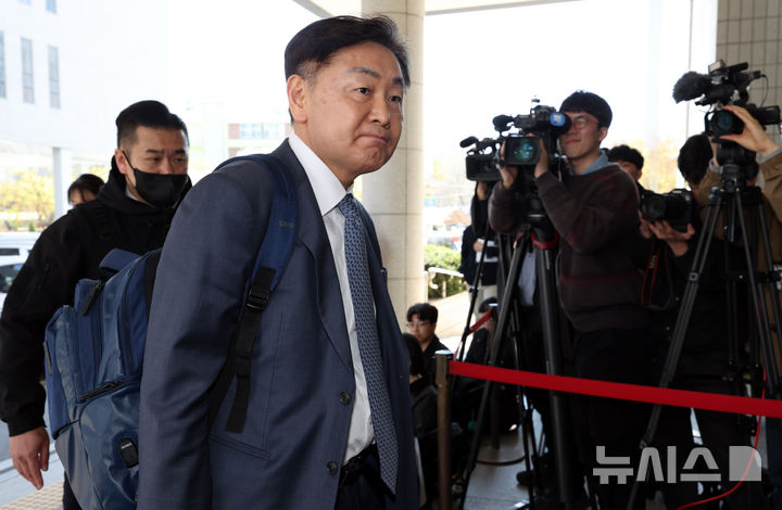 [서울=뉴시스] 최진석 기자 = 김관영 전북특별자치도지사가 7일 서울 양천구 서울남부지법에서 열린 더불어민주당 상대 징계 효력정지 가처분 1차 심문기일에 출석하고 있다. 2026.04.07. [email protected]