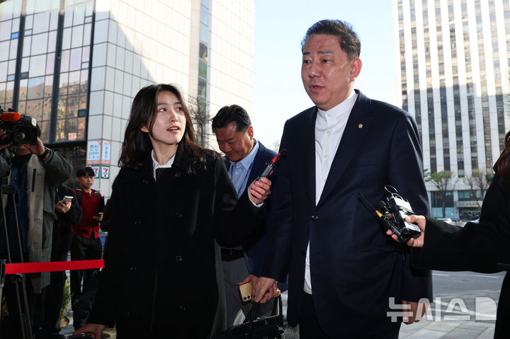 [서울=뉴시스] 권창회 기자 = 정치자금법 위반 등 각종 비위 의혹을 받는 김병기 무소속 의원이 8일 서울 마포구 공공범죄수사대에서 열린 6차 피의자 조사에 출석하며 발언하고 있다. 2026.04.08. [email protected]