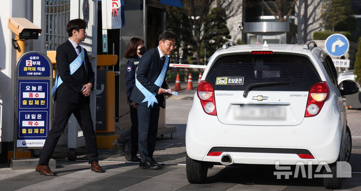 [서울=뉴시스] 김선웅 기자 = 자원안보 위기 관련 공공기관 차량 2부제(홀짝제)가 시작된 8일 서울 종로구 정부서울청사에서 서울청사관리소 직원들이 2부제 안내 캠페인을 진행하고 있다. 2026.04.08. [email protected]