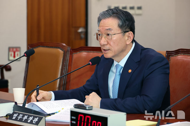 [서울=뉴시스] 김금보 기자 = 정성호 법무부장관이 8일 오전 서울 여의도 국회에서 열린 법제사법위원회 전체회의에서 의원 질의에 답변을 하고 있다. 2026.04.08. [email protected]