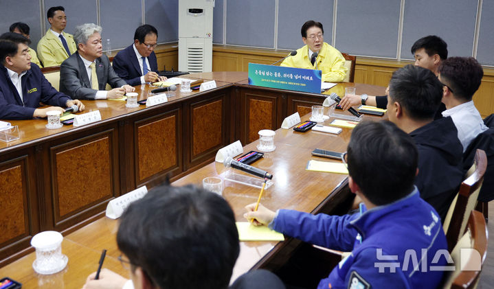[의왕=뉴시스] 고범준 기자 = 이재명 대통령이 8일 경기 의왕 내륙컨테이너 기지 제2터미널에서 열린 고유가 위기극복을 위한 화물운송·물류업계 현장 간담회에서 발언하고 있다. 2026.04.08. [email protected]