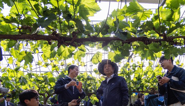 [서울=뉴시스] 정청래 더불어민주당 대표가 8일 경북 상주시 모동면의 한 포도농장을 찾아 민생 현장체험의 일환으로 샤인머스캣 포도 순따기 작업을 하고 있다.(사진=더불어민주당 제공) 2025.04.08. [email protected] *재판매 및 DB 금지