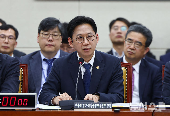 [서울=뉴시스] 김명년 기자 = 배경훈 부총리 겸 과학기술정보통신부 장관이 9일 오전 서울 여의도 국회에서 열린 과학기술정보방송통신위원회 전체회의에서 의원 질의에 답변하고 있다. 2025.04.09. [email protected]