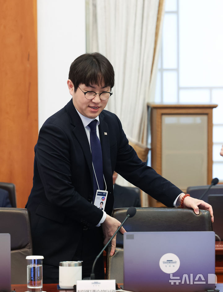 [서울=뉴시스] 고범준 기자 = 하정우 AI미래기획수석이 9일 청와대에서 열린 수석보좌관회의에 입장하고 있다. (청와대통신사진기자단) 2026.04.09. [email protected]