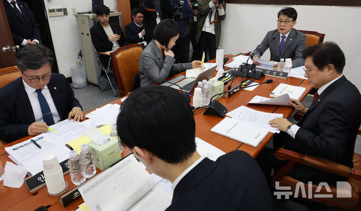 [서울=뉴시스] 김금보 기자 = 진성준 국회 예산결산특별위원회 위원장이 9일 오후 서울 여의도 국회에서 열린 제1차 2026년도 제1회 추가경정예산안 등 조정소위원회에서 인사말을 하고 있다. 2026.04.09. [email protected]