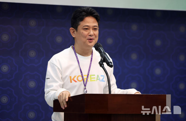[서울=뉴시스] 김선웅 기자 = 임상우 외교부 공공외교대사가 10일 서울 종로구 정부서울청사 외교부에서 열린 2026 KOREAZ 서포터즈 발대식에서 인사말을 하고 있다.