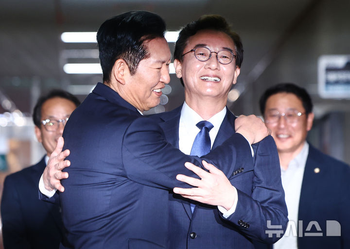 포옹하는 정청래와 전재수