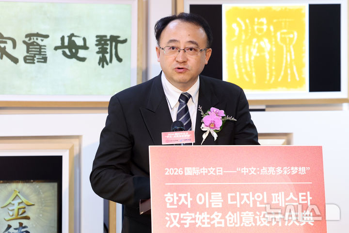 [서울=뉴시스] 박진희 기자 = 왕쉰 중국남방항공 한국지사 지사장이 10일 서울 종로구 중국문화원에서 열린 '한자이름디자인페스타' 시상식에 참석하여 인사말을 하고 있다.