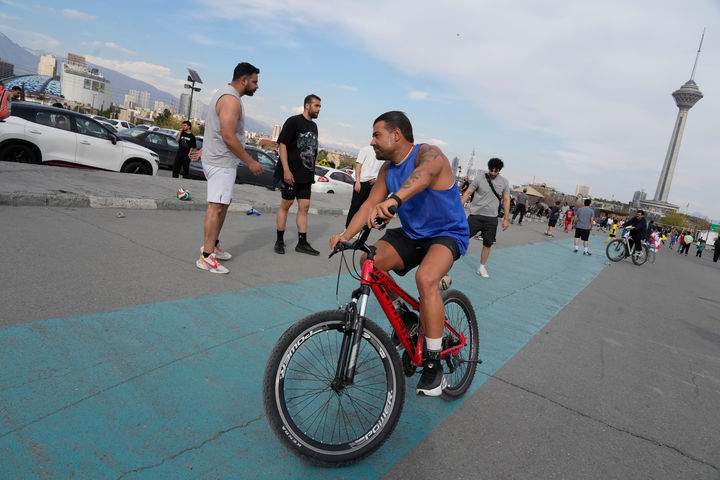[테헤란=AP/뉴시스] 10일(현지 시간) 이란 테헤란 시민들이 주말을 맞아 파르디산 공원에서 여가를 즐기고 있다. 2026.04.11.