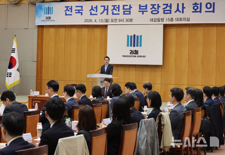 [서울=뉴시스] 배훈식 기자 = 구자현 검찰총장 직무대행(대검찰청 차장검사)이 13일 오전 서울 서초구 대검찰청에서 열린 전국 선거전담 부장검사 회의에서 인사말을 하고 있다. 2026.04.13. [email protected]