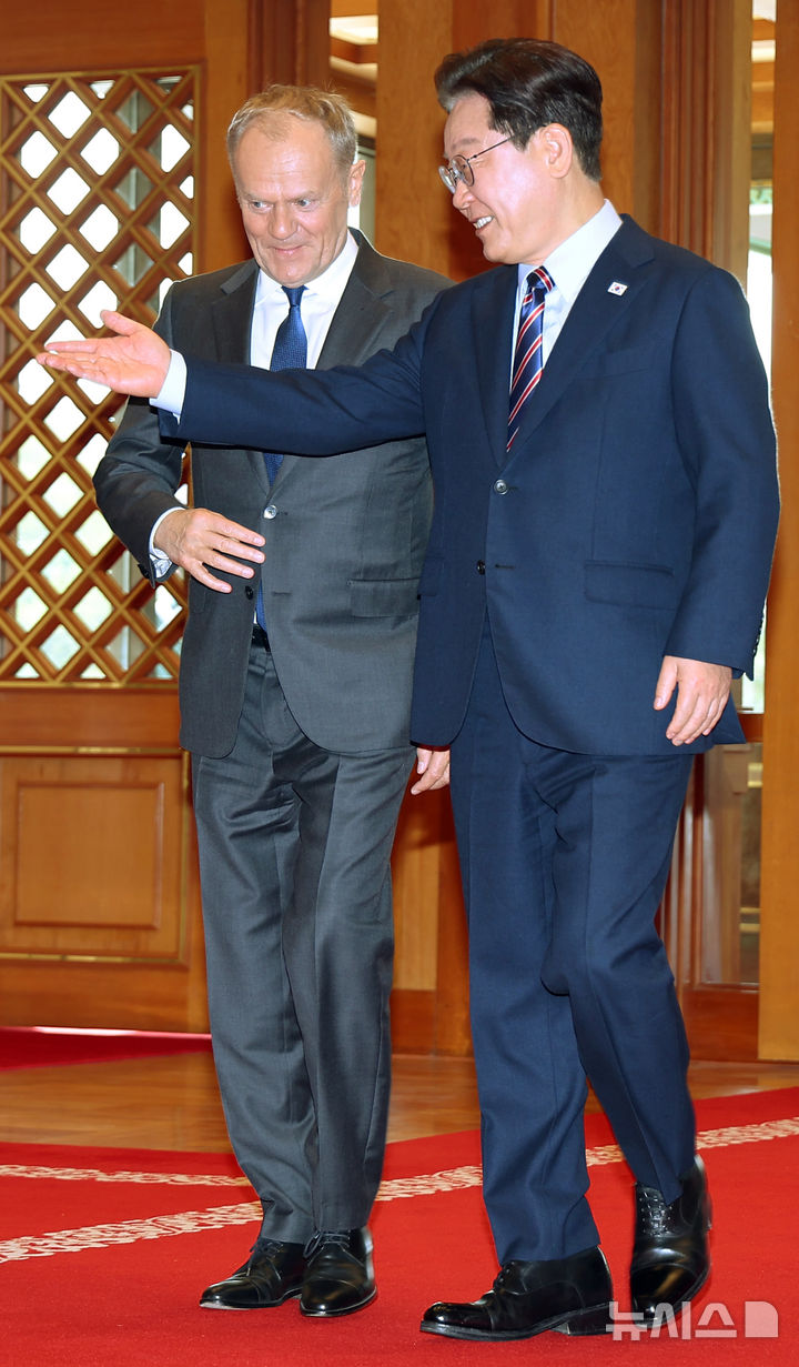 도날드 투스크 폴란드 총리 영접하는 이재명 대통령