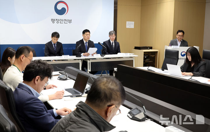 [세종=뉴시스] 강종민 기자 = 김영수 행정안전부 의정관(가운데)이 13일 세종시 정부세종청사에서 부적절한 정부포상 전면 재검토 및 취소 추진방안을 발표하고 있다. 2026.04.13. [email protected]