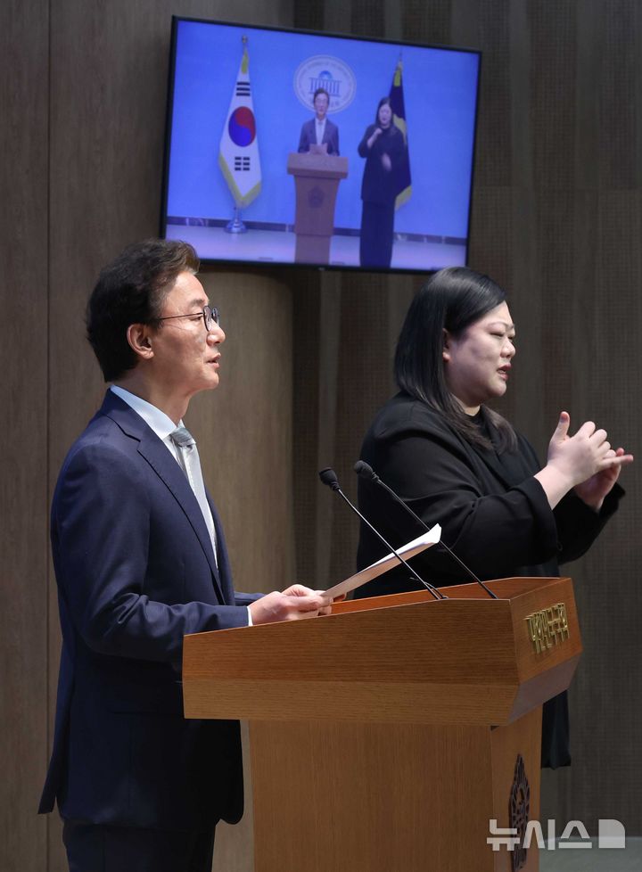 [서울=뉴시스] 조성봉 기자 = 전재수 더불어민주당 부산시장 후보가 13일 오전 서울 여의도 국회 소통관에서 열린 후보 확정 관련 기자회견에서 포부를 밝히고 있다. 2026.04.13. [email protected]