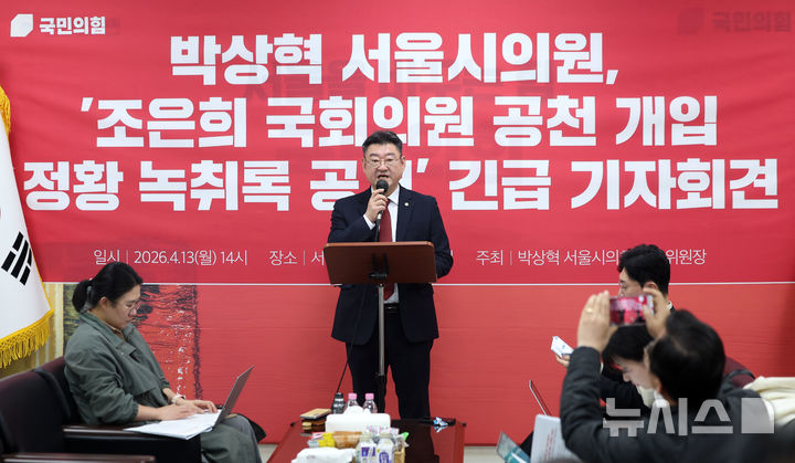 박상혁 의원은 이날 기자회견에서 서초구 제1선거구 단수 후보로 추천된 김지훈 서초구의원에 대해 "조은희 의원의 구청장 시절 비서 출신으로 현재 방배동에서 지역활동을 하고 있는 인물"이라고 밝히고 녹취록에서 이번 공천이 지역 구민 의사가 아닌 특정 정치인의 압력에 의한 결과라고 주장했다. 이에 조은희 국민의힘 의원은 이에대해 사실무근 이라고 반박했다. 2026.04.13. [email protected]