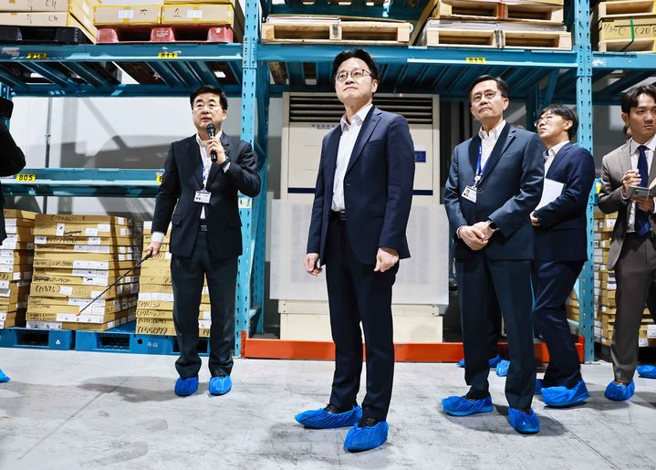 [서울=뉴시스] 김정관 산업통상부 장관이 13일 경기도 안산시 반월·시화산단 내 소재한 반도체 패키징 소재(PCB 기판) 생산 기업인 대덕전자를 방문하여 관계자로부터 회사 운영현황 및 애로사항을 청취하고 석유화학 품목의 생산·수급 상황을 점검하였다. (사진=산업통상부 제공). 2026.04.13. [email protected] *재판매 및 DB 금지