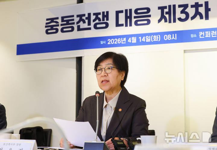 [서울=뉴시스] 황준선 기자 = 정은경 보건복지부 장관이 14일 오전 서울 중구 달개비에서 열린 중동전쟁 대응 제3차 보건의약단체 회의에서 발언하고 있다. 2026.04.14. [email protected]
