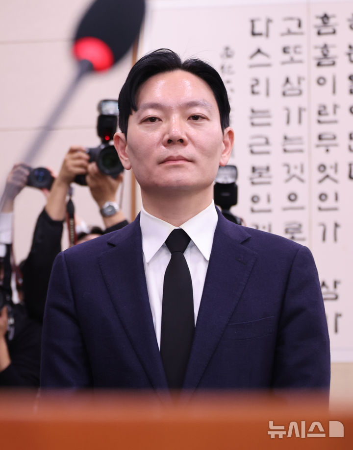 [서울=뉴시스] 김금보 기자 = 쌍방울 대북 송금 사건을 수사했던 박상용 검사가 14일 서울 여의도 국회 '윤석열정권정치검찰조작기소의혹사건진상규명국정조사특별위원회'에서 열린 청문회에서 선서 거부에 대한 육성 소명 기회를 요청하고 있다. 2026.04.14. [email protected]