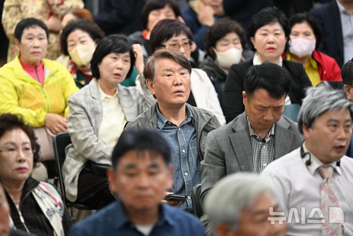 [광주=뉴시스] 이현행 기자 = 더불어민주당 전남광주통합특별시장 결선 발표 날인 14일 오후 광주 서구 광천동 김영록 후보 캠프에서 김 후보 지지자들이 결선 패배 후 믿을 수 없다는 표정을 짓고 있다. 2026.04.14. [email protected]