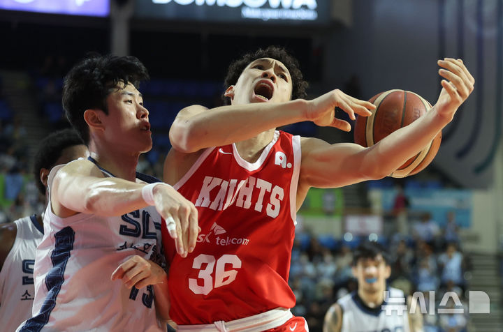 [서울=뉴시스] 권창회 기자 = 14일 서울 송파구 잠실학생체육관에서 열린 2025-2026 프로농구 6강 플레이오프 2차전 서울 SK와 고양 소노의 경기, SK 다니엘이 슛을 하던 중 볼을 놓치고 있다. 2026.04.14. [email protected]