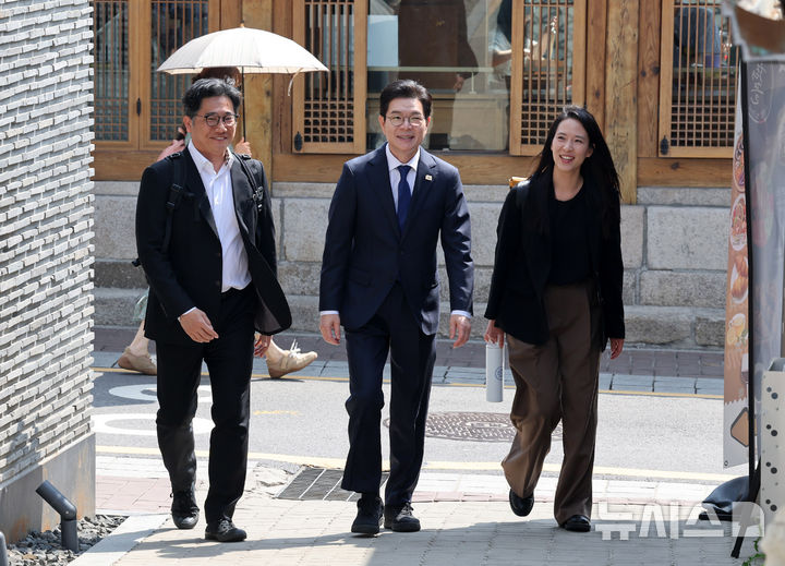[서울=뉴시스] 배훈식 기자 = 찾아가는 서울人터뷰에 나선 정원오(왼쪽 두번째) 더불어민주당 서울시장 후보가 15일 오전 서울 종로구 북촌의 뜰에서 열린 지역 소상공인들과의 간담회에 참석하고 있다. 2026.04.15. [email protected]