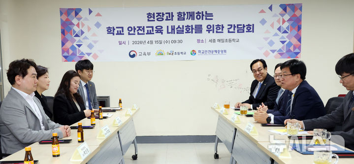 [세종=뉴시스] 강종민 기자 = 최교진 교육부 장관이 15일 세종시의 한 초등학교에서 열린 현장과 함께하는 학교 안전교육 내실화를 위한 간담회에 참석, 발언하고 있다. 2026.04.15. [email protected]