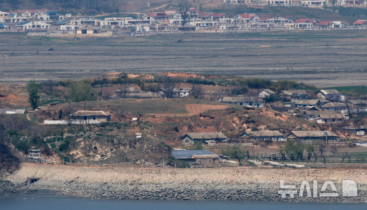 [인천=뉴시스] 전진환 기자 = 김일성 북한 주석 생일(태양절)인 15일 인천 강화군 강화평화전망대에서 바라본 북한 황해북도 개풍군의 한 마을에 적막감이 감돌고 있다. 2026.04.15. [email protected]