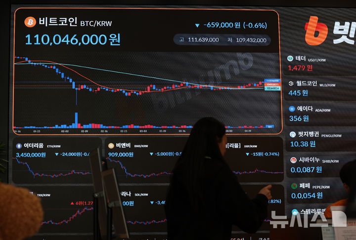 [서울=뉴시스] 이영환 기자 = 이란전쟁 종전 협상 재개 가능성에 비트코인이 7만5천달러 선을 회복하고 가상화폐가 상승세를 보인 15일 오후 서울 서초구 빗썸라운지 강남점에 비트코인 시세가 표시되고 있다. 2026.04.15. [email protected]