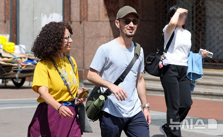 [대구=뉴시스] 이무열 기자 = 대구 낮 최고기온이 25도까지 오르며 초여름 날씨를 보인 15일 대구 중구 동성로에서 반팔 차림을 한 외국인들이 이동하고 있다. 2026.04.15. [email protected]
