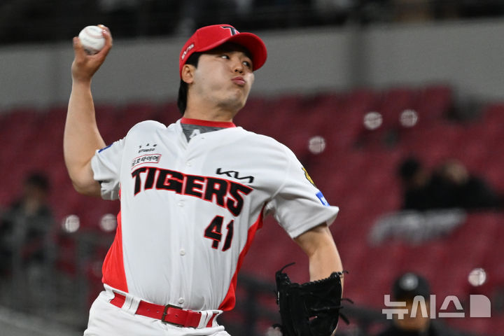 [광주=뉴시스] 이영주 기자 = 15일 오후 광주 북구 광주-기아챔피언스필드에서 열린 2026 신한 SOL KBO리그 키움히어로즈 대 KIA타이거즈의 경기. 4회 초 KIA 황동하가 역투하고 있다. 2026.04.15. [email protected]